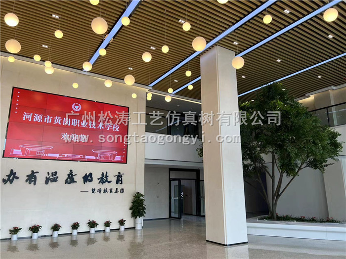 河源市黃崗職業(yè)技術(shù)學院是國家首批現(xiàn)代學徒制試點單位,是教育部高職高專人才培養(yǎng)工作水平評估優(yōu)秀院校。我們幫助他們在入口處打造了栩栩如生的仿真榕樹造景。產(chǎn)品總高到達6.2米,與整體環(huán)境相結(jié)合成為,讓綠化不受環(huán)境的限制。