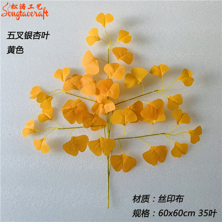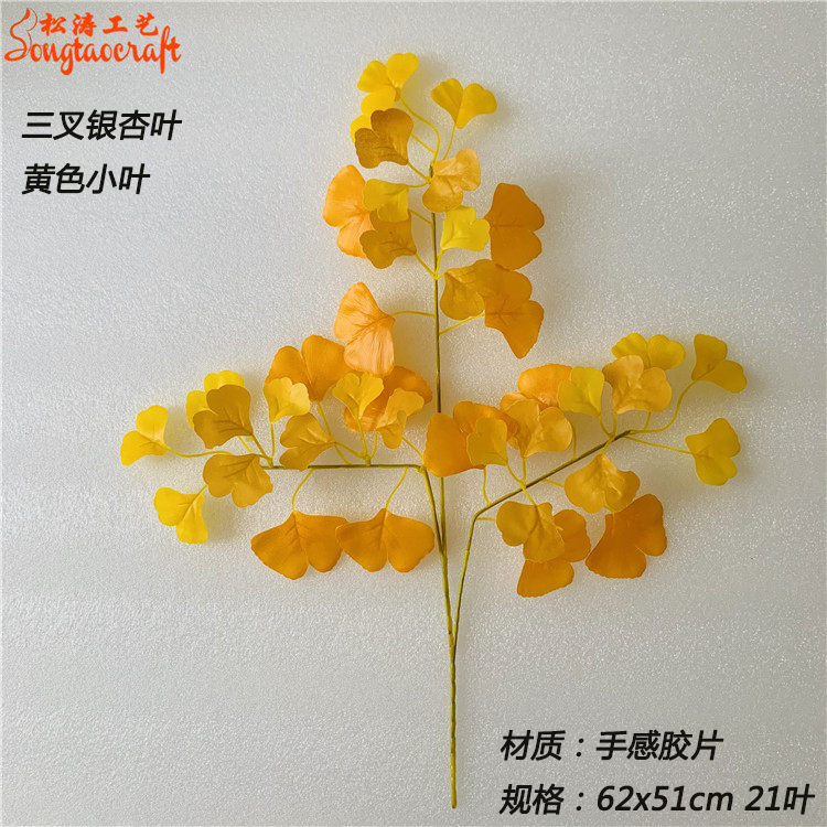 銀杏葉包裝規(guī)格:120x98x70cm/300打 ,12支/打,手感銀杏葉顏色可選:黃色、綠色。規(guī)格可選:五叉銀杏葉:60x60cm 35葉 三叉手感銀杏葉-大葉:61x63cm 21葉 三叉手感銀杏葉-小葉:62x51cm 21葉 。 如下為單支手感銀杏葉細節(jié)效果:
